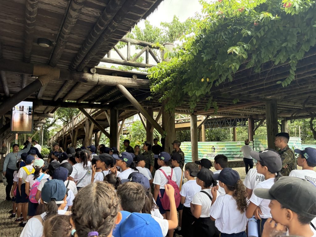 Cássia Santos, funcionária da Organização Social Pará 2000, também acompanhou a visitação dos alunos e conta um pouco mais sobre esse processo. “Quando recebemos essas turmas — não só escolares, mas também excursões que vêm de fora —, a gente enfatiza bastante a questão dos cuidados ambientais, ressaltando a importância da valorização das nossas espécies. Também explicamos um pouco de como funciona o resgate, já que 90% dos nossos animais vêm de resgates, seja por acidentes na natureza ou por apreensões ilegais. Falamos ainda sobre o processo das espécies que são reinseridas na natureza. Já aquelas que não conseguimos reabilitar — geralmente por conta de comorbidades ou outras limitações — ficam sob a guarda do órgão responsável e do parque.”